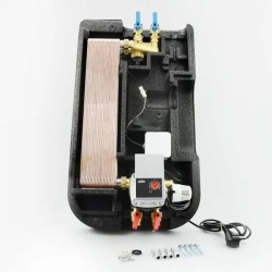 La "station d'eau chaude fraiche", également appelée "module de production d'eau chaude sanitaire", est une unité hydraulique qui utilise l'eau chaude (non sanitaire) stockée dans un accumulateur (réservoir tampon) pour produire instantanément de l'eau chaude sanitaire.
